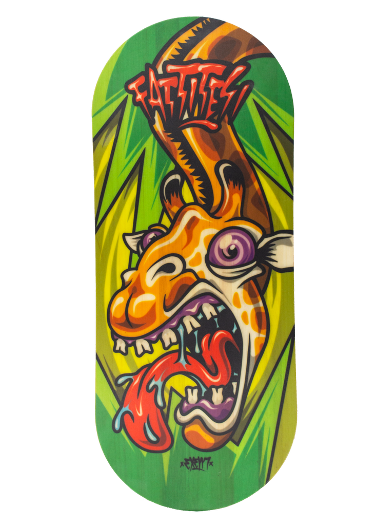 Inspired by modern skateboards with a wide, rounded nose and tail with shaped sides. A board that makes riding easier thanks to its shape, making landings from tricks on flats and in the park softer and safer. Proud to have created this new shape.. TAKE THE FUTURE!!