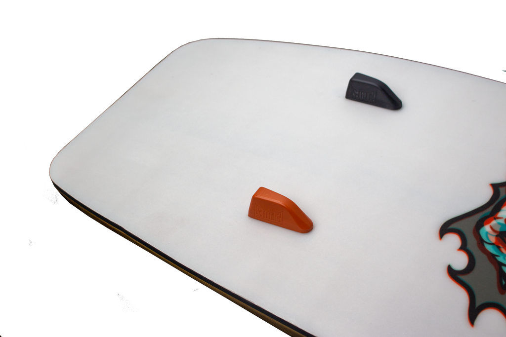 Lock-in fins, manufactured in our factory in Italy, are essential accessories for demanding rides. We know how difficult they can be, which is why we use the finest materials and the best design for high performance. Attached with screws to the nose of your wakeskate, they allow you to perform locking tricks on any type of feature or rail.