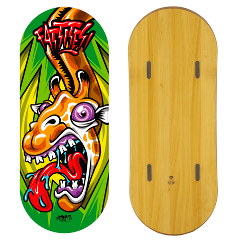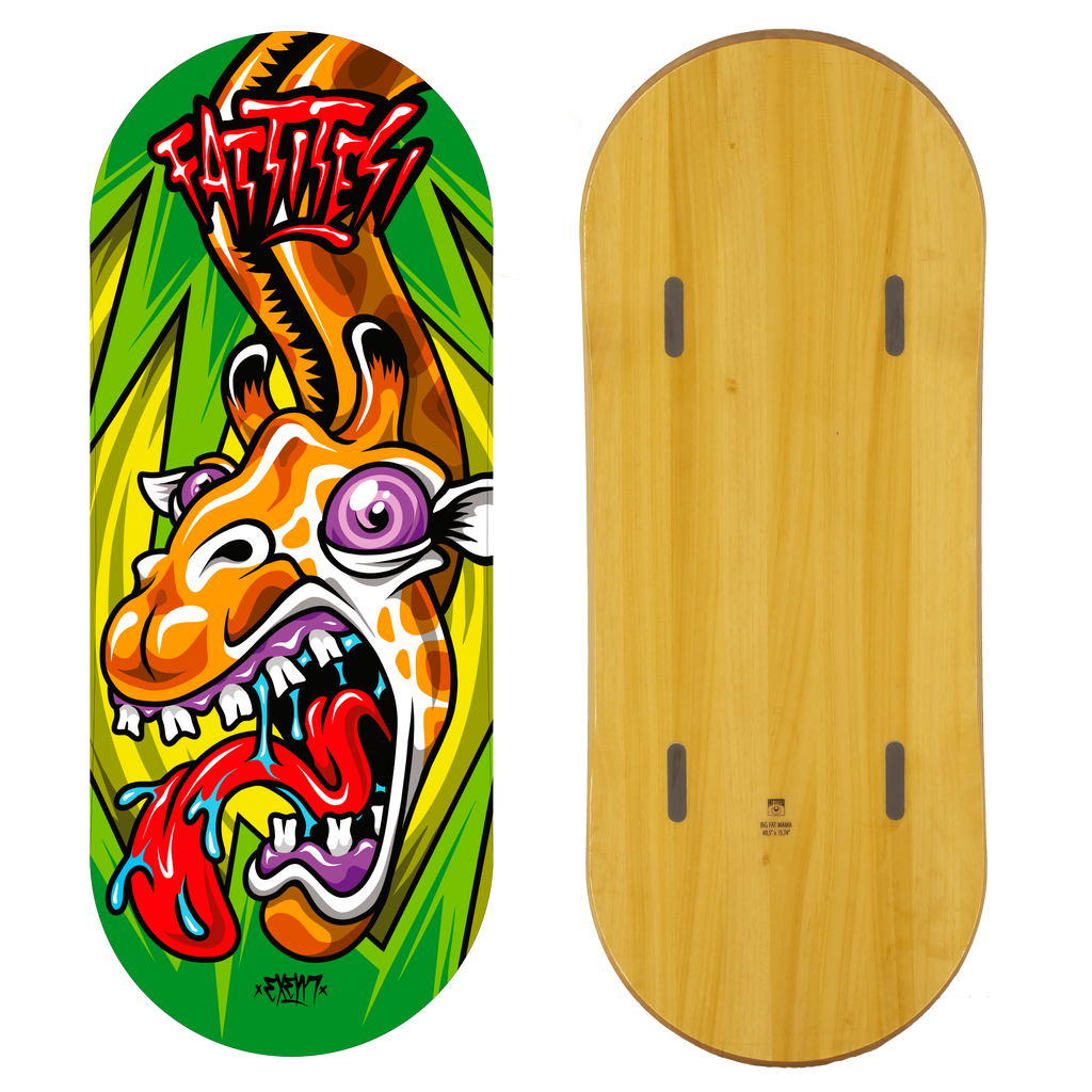 Inspired by modern skateboards with a wide, rounded nose and tail with shaped sides. A board that makes riding easier thanks to its shape, making landings from tricks on flats and in the park softer and safer. Proud to have created this new shape.. TAKE THE FUTURE!!